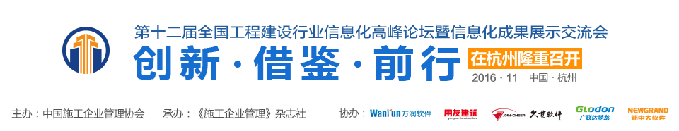 【本網(wǎng)訊】2016年11月24日~25日,由中國施工企業(yè)管理協(xié)會主辦、《施工企業(yè)管理》雜志社承辦的“第十二屆全國工程建設(shè)行業(yè)信息化高峰論壇暨信息化成果展示交流會”在杭州隆重召開。論壇以“創(chuàng)新?借鑒?前行”為主題,深入探討了在國家“創(chuàng)新驅(qū)動”戰(zhàn)略的指引下,如何充分借鑒行業(yè)內(nèi)外成功經(jīng)驗與優(yōu)秀成果,立足行業(yè)特點和發(fā)展實際,堅定信心,把握信息化主動權(quán),發(fā)揮后發(fā)優(yōu)勢,加快“兩化”融合,在創(chuàng)新實踐中求突破、見實效,推動行業(yè)信息化不斷取得新… 全文
