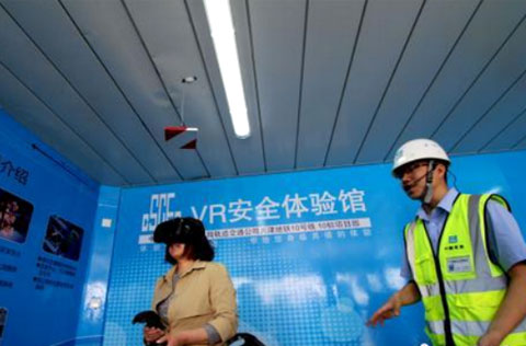 圖為來(lái)賓在VR安全體驗(yàn)館體驗(yàn)安全施工 張道正 攝