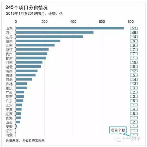 245個(gè)項(xiàng)目中有10個(gè)項(xiàng)目的規(guī)模信息不詳,為了方便計(jì)算和分析現(xiàn)將其規(guī)模金額記作0,由此可得總金額為4266億元,這些項(xiàng)目主要分布在以下省份中: