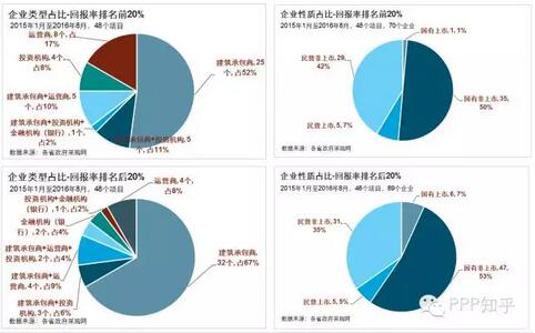 在除去3個(gè)投資回報(bào)率過(guò)高和過(guò)低的極值項(xiàng)目和1個(gè)2014年的項(xiàng)目后,剩下的241個(gè)項(xiàng)目中回報(bào)率排名在前20%的共有48個(gè)項(xiàng)目,回報(bào)率范圍在 8.3%到14%,這些項(xiàng)目中類型為建筑承包商的企業(yè)參與的項(xiàng)目共有36個(gè),中標(biāo)企業(yè)只有建筑承包商的項(xiàng)目占52%,投資機(jī)構(gòu)參與的項(xiàng)目有10個(gè),剩下的參與者為運(yùn)營(yíng)商和金融機(jī)構(gòu)(銀行),共有14個(gè)項(xiàng)目。項(xiàng)目回報(bào)率排在后20%的有48個(gè)項(xiàng)目,回報(bào)率范圍在1.0%至5.94%,其中占比最高的企業(yè)類型還是建筑承包商,參與的項(xiàng)目有42個(gè),第2為運(yùn)營(yíng)商,共參與10個(gè)項(xiàng)目,最后是金融機(jī)構(gòu),參與2個(gè)項(xiàng)目。