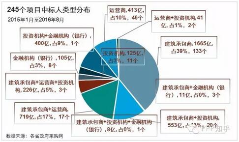 可以看出,在公布了回報(bào)率信息的245個(gè)項(xiàng)目中,類型為建筑承包商的企業(yè)參與率最高,不論是項(xiàng)目個(gè)數(shù)或是總中標(biāo)金額都位列第1,其中建筑承包商單獨(dú)中標(biāo)的項(xiàng)目總金額排名第1,,有1665億,占比39%,一共133個(gè)項(xiàng)目;金額數(shù)量排名第2的為建筑承包商與運(yùn)營(yíng)商的聯(lián)合體,中標(biāo)17個(gè)項(xiàng)目共719億,占 17%;建筑承包商和投資機(jī)構(gòu)的聯(lián)合體排名第3,總金額為553億,共20個(gè)項(xiàng)目。2015年到2016年中金融機(jī)構(gòu)參與的PPP項(xiàng)目共有20個(gè),其中有 13個(gè)項(xiàng)目的回報(bào)條件中規(guī)定了投資回報(bào)率,可以看出,金融機(jī)構(gòu)在項(xiàng)目的選擇中比較在意回報(bào)條件中的投資回報(bào)率。