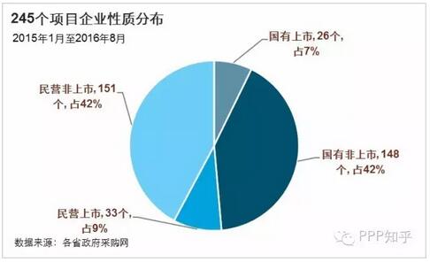 將聯(lián)合體內(nèi)的所有企業(yè)拆開(kāi)后,245個(gè)項(xiàng)目的中標(biāo)人一共包含358個(gè)企業(yè),其中民營(yíng)企業(yè)的個(gè)數(shù)較國(guó)有企業(yè)的個(gè)數(shù)稍多,共有184個(gè),占比為51%,國(guó)有企業(yè)共有174個(gè),占比為49%,非上市企業(yè)在民營(yíng)企業(yè)和國(guó)有企業(yè)中都占大多數(shù),比例均為42%。