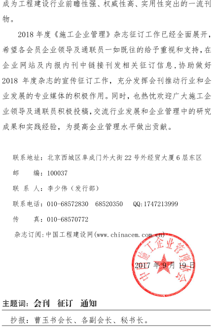 版權所有:北京華信捷投資咨詢有限責任公司《施工企業(yè)管理》雜志社