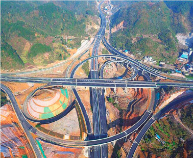 甕安縣銀盞互通,甕馬高速、貴甕高速、道安高速、安江高速等四條高速交匯于此,其中,貴甕、道安、安江三條高速均由中國交建采用BOT++ EPCC模式投資建設。 賀春雨 攝