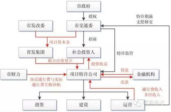 采用PPP模式,北京市政府授權(quán)市交通委作為實(shí)施機(jī)關(guān),市交通委通過(guò)公開招標(biāo)的方式選擇社會(huì)投資人。首發(fā)集團(tuán)作為政府出資人代表,與社會(huì)投資人共同成立項(xiàng)目公司,首發(fā)集團(tuán)不參與分紅。市交通委通過(guò)PPP合同授權(quán)項(xiàng)目公司投資、建設(shè)及運(yùn)營(yíng)管理興延高速公路,期限屆滿移交政府。項(xiàng)目特許經(jīng)營(yíng)期內(nèi)的特許經(jīng)營(yíng)權(quán),包括高速公路收費(fèi)權(quán)、沿線廣告牌以及加油站經(jīng)營(yíng)權(quán)。