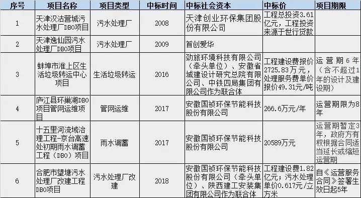 國(guó)內(nèi)目前DBO項(xiàng)目一覽表