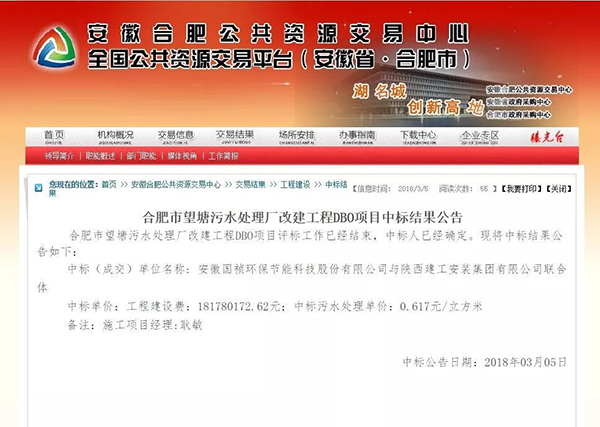 近日,安徽合肥公共資源交易中心發(fā)布《合肥市望塘污水處理廠改建工程DBO項(xiàng)目中標(biāo)結(jié)果公告》,安徽國(guó)禎環(huán)保節(jié)能科技股份有限公司與陜西建工安裝集團(tuán)有限公司聯(lián)合體為中標(biāo)人。工程建設(shè)費(fèi)1.82億元;中標(biāo)污水處理單價(jià)為0.617元/立方米。