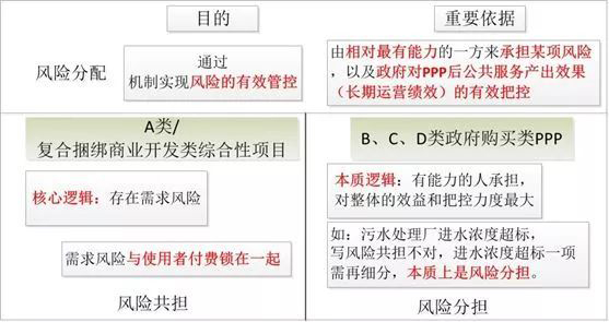 實際上,對于存在不可預(yù)知需求風(fēng)險的A類PPP設(shè)計,由于風(fēng)險分擔(dān)設(shè)計無法窮盡,風(fēng)險共擔(dān)的設(shè)計一定會存在。而B、C、D三類政府購買的PPP項目中,理論上筆者看到的風(fēng)險共擔(dān)其實都是未完成足夠設(shè)計的風(fēng)險分擔(dān)。