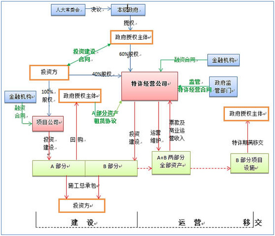 B部分投資建設,政府與投資方按一定比例出資(如6:4股權比例)成立特許經營公司,負責B部分的投資建設。