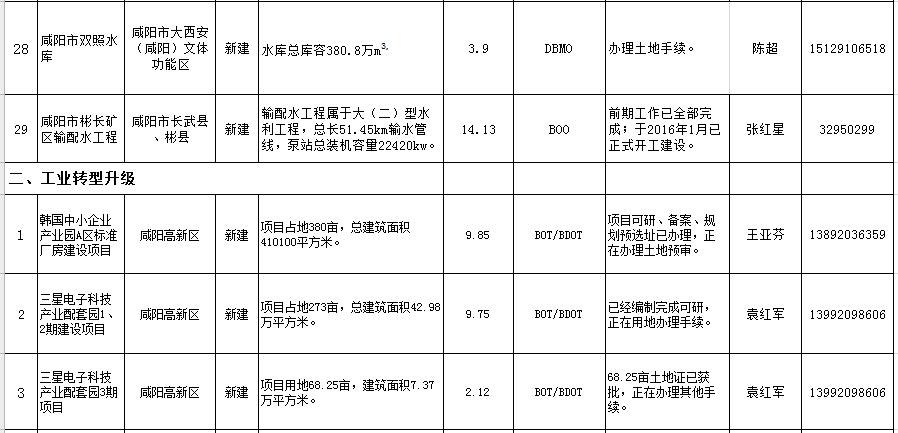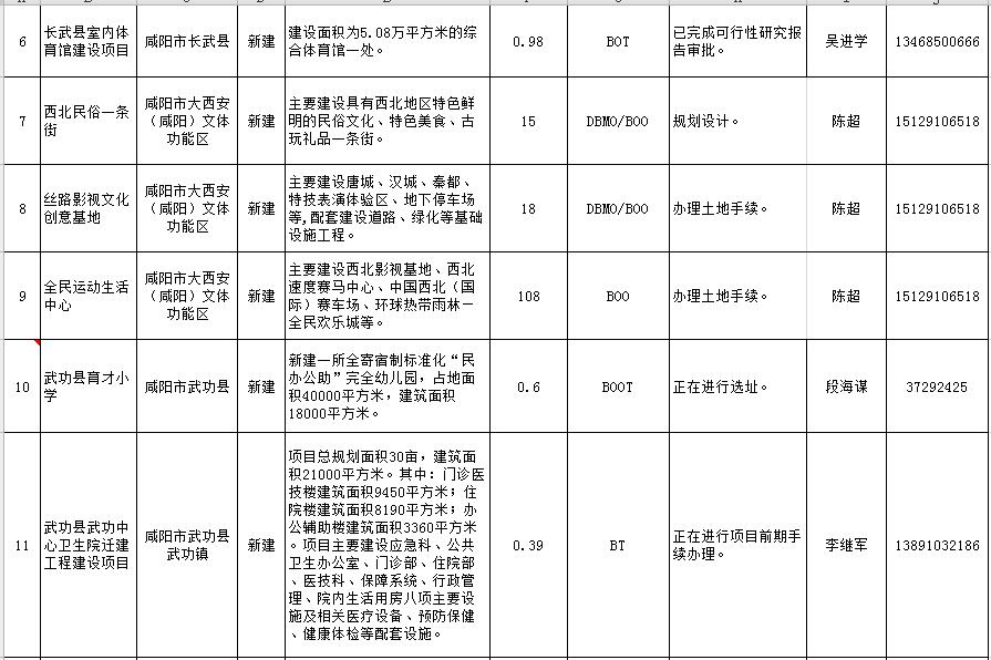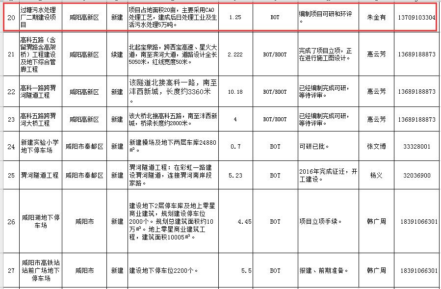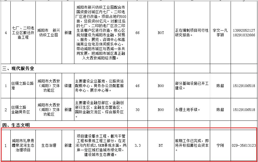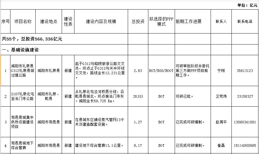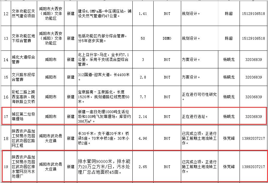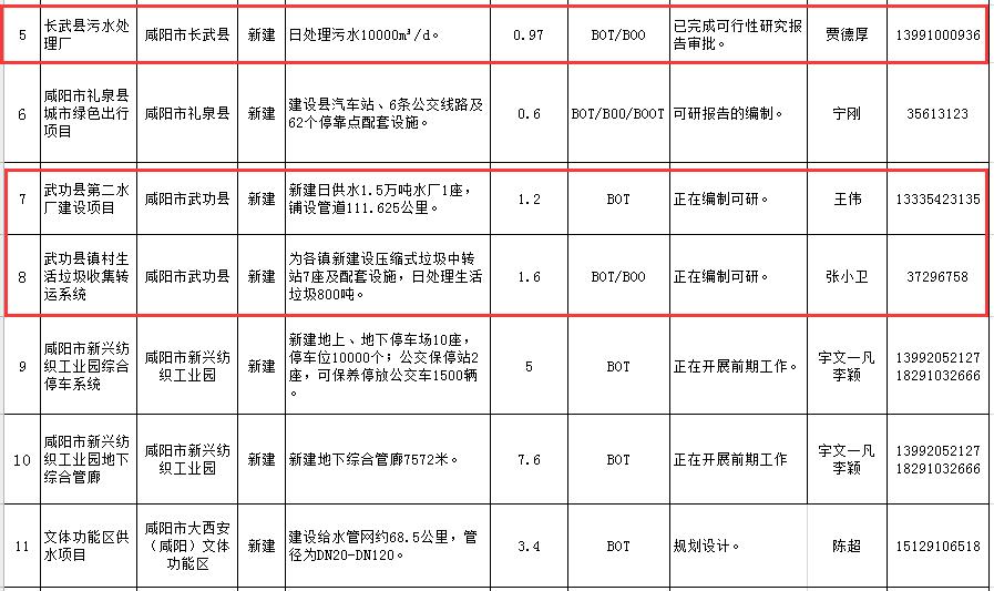 咸陽市第三批政府和社會資本合作(PPP)項目表