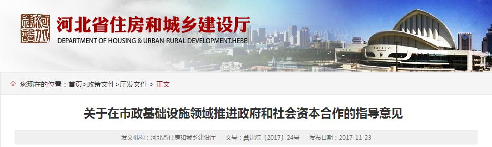 為鼓勵和引導(dǎo)社會投資,提高市政基礎(chǔ)設(shè)施建設(shè)、運(yùn)營和管理水平,根據(jù)《河北省人民政府辦公廳轉(zhuǎn)發(fā)關(guān)于在全省公共服務(wù)領(lǐng)域推廣政府和社會資本合作模式實(shí)施意見的通知》(冀政辦〔2015〕36號)、《河北省委省人民政府關(guān)于深化投融資體制改革的實(shí)施意見》(冀發(fā)〔2016〕43號)要求,現(xiàn)就市政基礎(chǔ)設(shè)施領(lǐng)域推進(jìn)政府和社會資本合作(PPP)模式提出以下指導(dǎo)意見: