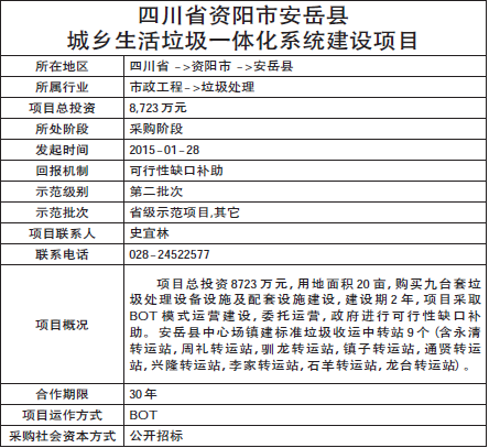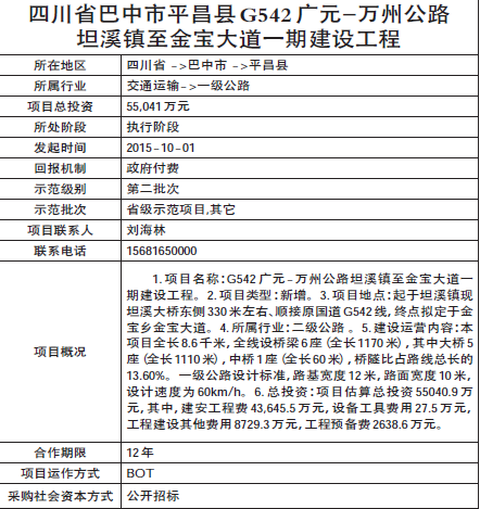 全國PPP綜合信息平臺國家和省級示范項目基本信息(第115期)