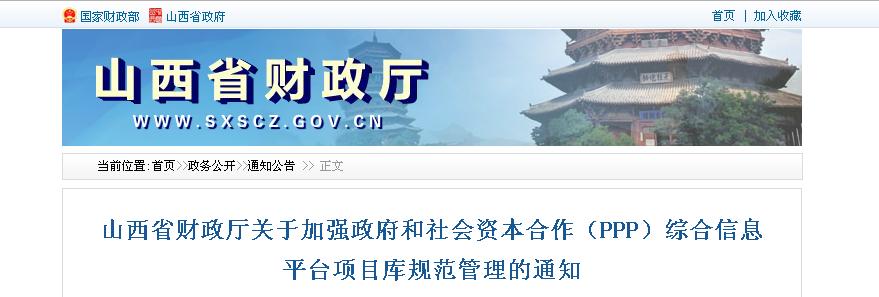 山西省財(cái)政廳關(guān)于加強(qiáng)政府和社會(huì)資本合作(PPP)綜合信息平臺(tái)項(xiàng)目庫規(guī)范管理的通知