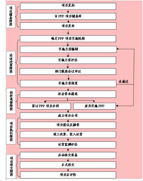 6.實施方案審查審批。對于市本級項目,實施機構(gòu)將PPP項目實施方案報市發(fā)改委,市發(fā)改委委托市PPP中心對實施方案進行評估論證,并出具評估意見。PPP實施方案經(jīng)部門聯(lián)席會議審查通過后,由項目實施機構(gòu)報市政府審批。實施方案已通過審批的PPP項目,可以開展下一步工作;未通過審批的,可對實施方案進行調(diào)整后重新審批;經(jīng)重新審批后仍不能通過的,不得采用PPP模式。對于各區(qū)、縣(市)項目,仍由屬地政府自行開展PPP項目實施方案的審查審批工作。