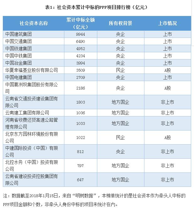 累計PPP項(xiàng)目中標(biāo)金額最高的企業(yè),毫無懸念是中建,中標(biāo)金額高達(dá)9944億元,占全國累計的PPP項(xiàng)目成交金額總量的10.6%!