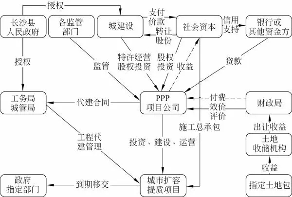 政府通過政府采購流程(公開招標(biāo))進(jìn)行PPP項(xiàng)目采購, 選擇社會投資人。項(xiàng)目的社會投資人依法能夠自行建設(shè)的,在遵循相關(guān)法律法規(guī)的規(guī)定下由社會投資人負(fù)責(zé)施工。政府授權(quán)出資人與社會投資人共同出資組建PPP項(xiàng)目公司,政府授予項(xiàng)目公司特許經(jīng)營權(quán),由項(xiàng)目公司采用“建設(shè)-運(yùn)營-移交”(BOT)方式投資、建設(shè)、運(yùn)營和維護(hù)相關(guān)項(xiàng)目。在滿足可用性付費(fèi)的條件下,在特許期內(nèi)政府方按政府付費(fèi)方式向項(xiàng)目公司支付費(fèi)用,項(xiàng)目公司收回投資并取得回報(bào)。特許經(jīng)營到期后,項(xiàng)目設(shè)施移交給政府指定機(jī)構(gòu)。