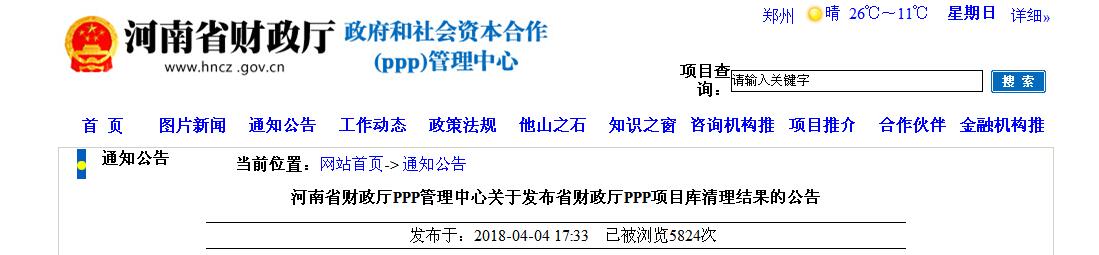 河南省財(cái)政廳PPP管理中心關(guān)于發(fā)布省財(cái)政廳PPP項(xiàng)目庫清理結(jié)果的公告