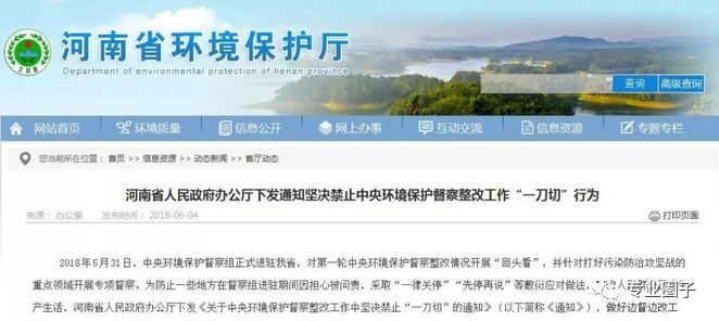 2018年6月3日河南省人民政府辦公廳關(guān)于中央環(huán)境保護督察整改工作中堅決禁止“一刀切”的通知: