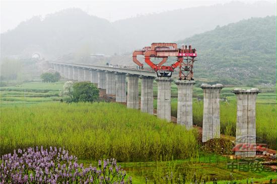 武九客專新建線路跨越老武九鐵路、杭瑞高速、316國(guó)道、省道等,施工難度不可小覷。其中,在陽(yáng)新境內(nèi)的荻田大橋跨老武九鐵路,其夾角只有7度,比普通跨鐵路橋的夾角低出許多(一般為30多度),全國(guó)罕見。