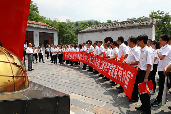 2018年6月26日,中建一局二公司百名黨員赴《沒有共產(chǎn)黨就沒有新中國》創(chuàng)作地北京房山霞云嶺開展“不忘初心 牢記使命”主題黨日活動(dòng),通過聆聽革命黨課,傳承紅色基因,積聚中國建筑藍(lán)色力量。