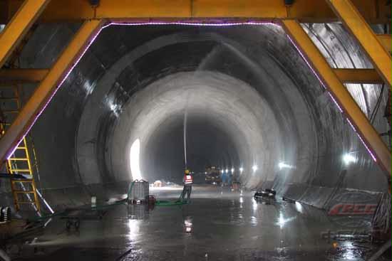 十八局四公司建設(shè)者在京張高鐵東花園隧道對襯砌混凝土進(jìn)行噴水養(yǎng)護(hù)