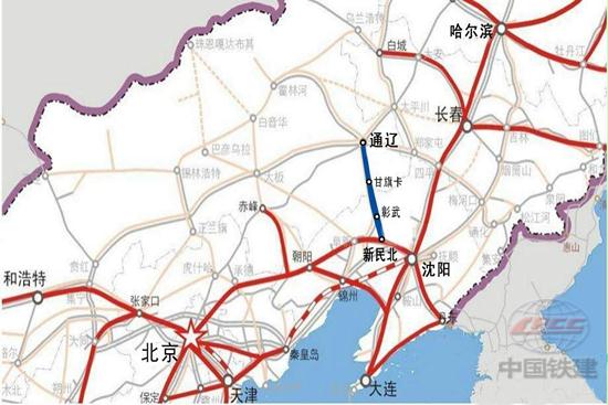 據(jù)悉,新通高鐵2016年6月開工建設,是國家中長期鐵路網(wǎng)規(guī)劃的“八橫八縱”高速鐵路網(wǎng)的組成部分,與在建的京沈高鐵相連接,匯入東北地區(qū)乃至全國高鐵網(wǎng)。高鐵自京沈高鐵新民北站引出,經(jīng)遼寧彰武、內(nèi)蒙古自治區(qū)甘旗卡,引入通遼站,線路全長197公里,設計時速250公里。
