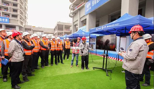 17日下午,觀摩團(tuán)多位領(lǐng)導(dǎo)蒞臨江北嘴金融城4號(hào)工程進(jìn)行現(xiàn)場(chǎng)觀摩交流。中冶建工和中冶賽迪信息的工作人員從人員定位、智能安全帽、實(shí)測(cè)實(shí)量、卸料平臺(tái)、塔吊攀爬防護(hù)設(shè)備、標(biāo)化視頻會(huì)議系統(tǒng)、環(huán)境監(jiān)測(cè)與自動(dòng)控制等方面進(jìn)行了智能工地實(shí)時(shí)化、實(shí)戰(zhàn)化、智能化應(yīng)用展示。讓觀摩領(lǐng)導(dǎo)身臨其境真實(shí)體驗(yàn),深入淺出的了解智能工地在項(xiàng)目中的實(shí)際應(yīng)用,展示效果得到了300余位觀摩團(tuán)領(lǐng)導(dǎo)的一致好評(píng)。 中冶云輕筑在本次觀摩交流會(huì)上備受矚目,它由中冶賽迪精心打造,為豐富“輕筑智慧工地云”平臺(tái)生態(tài),中冶賽迪和中冶建工本著優(yōu)勢(shì)互補(bǔ)、資源共享、信息互通、互惠共贏的原則,共同投入千萬(wàn)研發(fā)資金,進(jìn)行微創(chuàng)新共研。基于中冶建工資深的行業(yè)經(jīng)驗(yàn),打造了塔吊攀爬防護(hù)、實(shí)測(cè)實(shí)量等一系列面向工地場(chǎng)景的專(zhuān)項(xiàng)智能化產(chǎn)品。