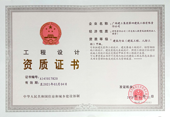1月24日,廣西建工集團第四建筑工程有限責任公司從國家住建部捧回了“建筑工程施工總承包特級資質(zhì)證書”及“建筑工程、人防工程專業(yè)甲級設計資質(zhì)證書”,擁有該領域最高通行證,標志著廣西建工四建成功晉升全國建筑施工行業(yè)特級梯隊。