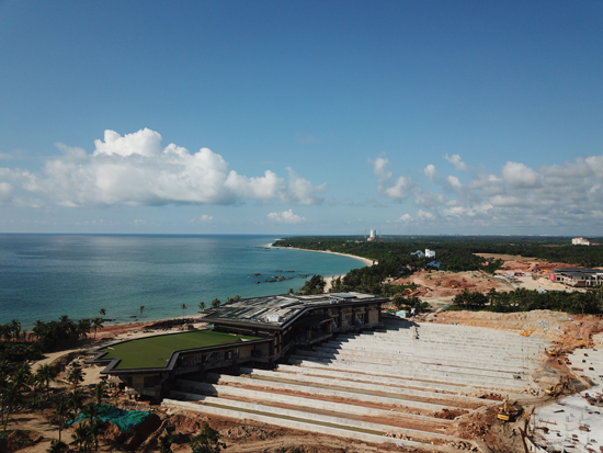 據(jù)悉,魯能山海天精品酒店、魯能山海天展銷中心面朝大海,,位于文昌市龍樓鎮(zhèn)紅海村委會(huì),屬海南銅鼓嶺國家級自然保護(hù)區(qū)實(shí)驗(yàn)區(qū)范圍內(nèi)。根據(jù)文昌市委、市政府“雙暫停”(暫停建設(shè)、暫停營業(yè))部署,守住生態(tài)紅線,酒店需要進(jìn)行整改及完善相關(guān)手續(xù)。這么裝修高檔的建筑簡單一拆了之太可惜,重建又費(fèi)時(shí)費(fèi)力,能不能整體平移到新址?業(yè)主單位經(jīng)過再三權(quán)衡,決定將這兩棟建筑進(jìn)行技術(shù)平移幾百米‘落戶’,其中酒店建筑面積5000多平方米,重1.5萬多噸,需要平移730米;展銷中心建筑面積為6000多平方米,重2萬多噸,需要平移154米。