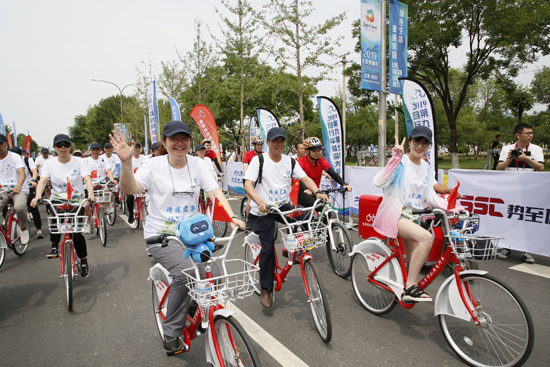 6月15日上午,2019第九屆北京國際自行車騎游大會在延慶鳴笛開幕,來自全國各地的5000余名自行車愛好者相聚延慶。開幕式上,土庫曼斯坦大使宣讀了“世界自行車日”綠色出行倡議書,倡導綠色出行。土庫曼斯坦游學方陣、中建一局二公司志愿者方陣、各騎行愛好者俱樂部方陣在開幕式上歌唱《我和我的祖國》,為本次騎游活動拉開序幕,在長城腳下、媯水河畔迎接新中國成立70周年。