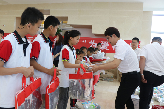 天保集團(tuán)始終關(guān)注教育事業(yè),特舉行了“天保公益行——為愛行動(dòng)”大型公益活動(dòng)。第一站通過捐助活動(dòng)已為孩子們收集到了書籍和文體用品。 2019年6月6日,“天保公益行——為愛行動(dòng)”系列活動(dòng)第二站來到了涿州市特教中心,為孩子們送上了兒童節(jié)與端午節(jié)的美好祝福。涿州市殘聯(lián)理事長(zhǎng)舒濤,辦公室主任賈素敏,天保集團(tuán)副總經(jīng)理李國(guó)棟,以及天保公益行五支代表隊(duì)隊(duì)長(zhǎng)參加了本次活動(dòng),并為這里的孩子和教師們送上了生活用品、學(xué)習(xí)用具有等。