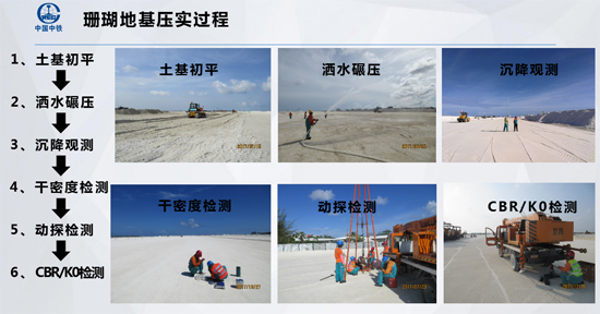 這四項(xiàng)研究成果對工程現(xiàn)場起到關(guān)鍵的指導(dǎo)作用,明確了吹填珊瑚砂地基處理最佳方案,解決了珊瑚砂地基施工后沉降量大和差異性大的問題,有效提高了珊瑚砂地基施工質(zhì)量和穩(wěn)定性,且首次掌握了珊瑚砂硬殼層地基沉降變形規(guī)律, 驗(yàn)證了珊瑚砂地基處理技術(shù)的有效性,消除了跑道因不均勻沉降損壞的質(zhì)量隱患提高了珊瑚砂地基壓實(shí)施工效率,顯著推進(jìn)了地基處理施工進(jìn)度,并全面攻克了珊瑚砂作為基層集料時(shí)因設(shè)計(jì)厚度超出攤鋪機(jī)攤鋪能力而產(chǎn)生的施工難題,節(jié)約大量養(yǎng)護(hù)用水和養(yǎng)護(hù)時(shí)間,有效緩解了本工程淡水資源缺乏問題,大大節(jié)省工期。(作者:文圖/ 牛龍龍 王錚)