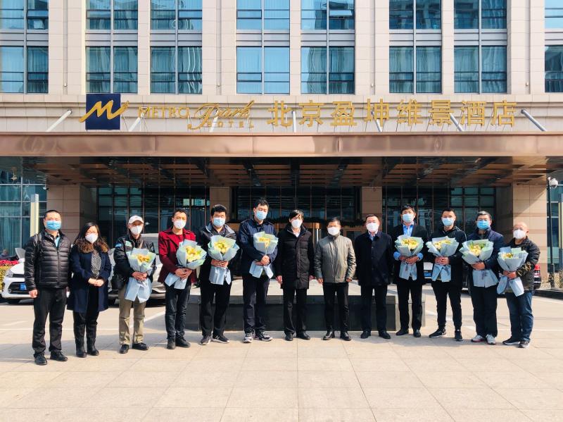 “感謝大家為支援雷神山建設(shè)做出的突出貢獻(xiàn),大家通宵達(dá)旦,與時間賽跑,與疫情決戰(zhàn),舍小家為大家,圓滿的完成此次援建任務(wù)。希望大家以后繼續(xù)秉承這份精神,擼起袖子加油干,越是艱險越向前,為公司高質(zhì)量發(fā)展添磚加瓦!”2月28日,北京盈坤維景酒店大門口,中建二局一公司黨委書記、董事長溫明把一束束鮮花送給了設(shè)備安裝分公司8名解除隔離醫(yī)學(xué)觀察、平安回歸的雷神山建設(shè)者。公司黨委副書記、工會主席郭建軍,設(shè)備安裝分公司黨委書記、總經(jīng)理彭孟珍及設(shè)備安裝分公司黨群、辦公室負(fù)責(zé)人等也專程到現(xiàn)場進(jìn)行迎接。