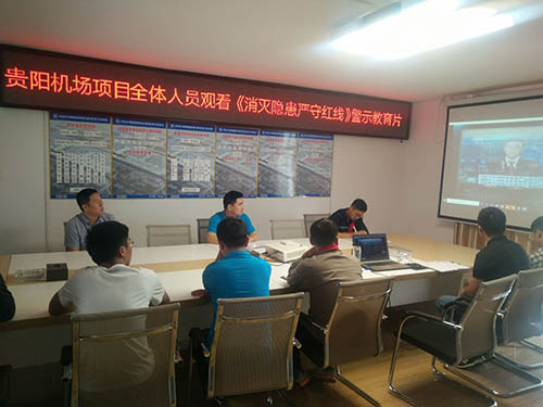 貴陽機(jī)場(chǎng)項(xiàng)目觀看《消滅隱患嚴(yán)守紅線》警示教育片 姚珊珊/攝