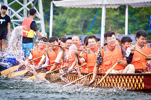 6月21日,中建二局一公司華中分公司在長沙市瀏陽赤馬湖舉辦首屆“攻堅杯”龍舟文化節(jié)暨建黨99周年主題活動,共計170余人參加。這是分公司成立后首次大型團建活動,也是連續(xù)第三年舉辦龍舟競渡團建。