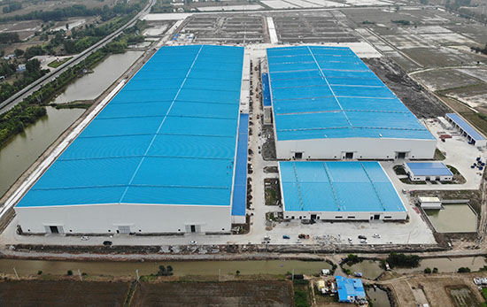 江蘇鑫慧風新能源項目,位于江蘇省鹽城市阜寧開發(fā)區(qū),由鋼結構成型車間及附房、后處理車間及附房、原材料庫房三部分組成,總建筑面積為11萬平方米,于2019年11月開工建設。