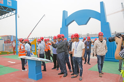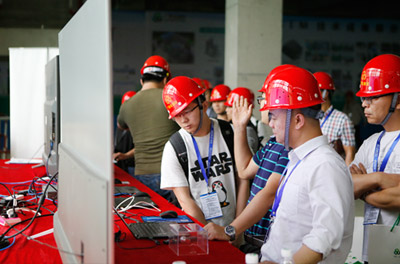 北京網(wǎng)動網(wǎng)絡(luò)科技股份有限公司現(xiàn)場演示、講解其工地信息化創(chuàng)新產(chǎn)品