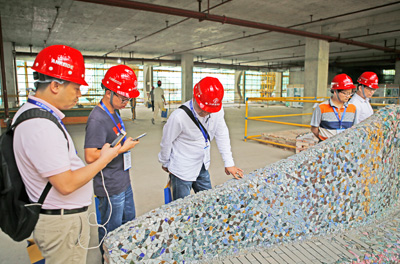 江蘇足財電子商務(wù)有限公司現(xiàn)場演示、講解其工地信息化創(chuàng)新產(chǎn)品
