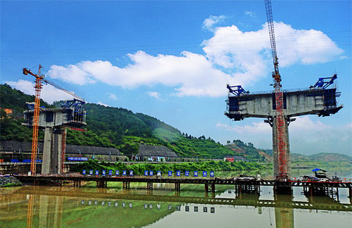 大橋南側(cè)河岸山坡陡峻,植被稀疏;北岸與在建城市道路濱江大道相接,施工重難點(diǎn)主要是跨越城市道路、懸臂梁及深水墩施工。安全風(fēng)險(xiǎn)壓力、進(jìn)度工期壓力都特別巨大,必須采取非常規(guī)措施和辦法才能完成任務(wù),是各方高度關(guān)注的重難點(diǎn)控制性工程,經(jīng)項(xiàng)目部領(lǐng)導(dǎo)研究決定,挑選有施工經(jīng)驗(yàn)、技術(shù)力量過硬、責(zé)任心強(qiáng)的青年職工成立青年突擊隊(duì),確保如期圓滿完成這一艱巨的施工任務(wù)。