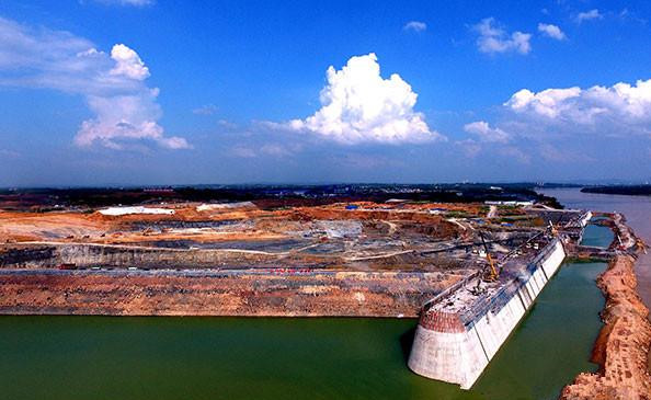 在一次次洪水面前,水電八局建設(shè)者把工程在艱難曲折中快速推進,2015年10月26日,臺風過后,縱向子圍堰勝利合攏;12月30日,3次洪水襲擊后,縱向混凝土圍堰首倉混凝土按期開澆。