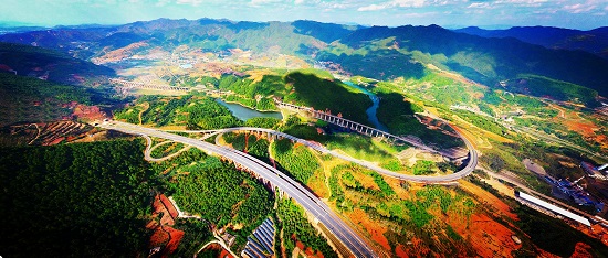 晉紅高速公路還特別利用云南高原山地地勢的優(yōu)點融合到隧道群與大中型橋梁建設的成品中,努力踐行中電建路橋集團“建造比人的生命更長久的建筑藝術”的企業(yè)理念,力求建造一處建筑與生態(tài)環(huán)境緊密融合的高速公路。北城立交也突出了建筑與自然環(huán)境相協(xié)調的特點,優(yōu)美線形完全融入地形條件,草木蔥蘢,行車舒適,為當?shù)孛癖娊ㄔ炝艘惶巸?yōu)美的文化線、風情線、旅游線,這建設成果正是對全體建設者的回報,正是中電建路橋集團聯(lián)合體孜孜不倦的追求,才有了如今優(yōu)雅美觀的高速公路。