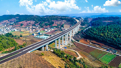 古彝漢風,詩意桃源。北方已是隆冬天氣,然而,地處滇南的瀘西依舊陽光普照,綠意盎然。午街鎮(zhèn)的田野,片片深綠,塊塊淺綠,一條鋼鐵巨龍在一個個巨人鐵掌的托起下盤山而臥,一直延伸遠方,這就是石瀘高速公路圭落哨大橋。 12月6日,由中電建路橋石瀘高速公路項目承建的圭落哨大橋雙幅順利貫通,標志著圭落哨大橋正式進入橋面鋪裝階段,同時也標志著石瀘高速公路主線已全部貫通。