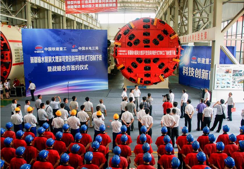 2016年6月,項(xiàng)目組參與研制的用于新疆ABH項(xiàng)目的國(guó)產(chǎn)首臺(tái)大埋深可變徑斜井敞開(kāi)式TBM成功下線(xiàn),填補(bǔ)了國(guó)內(nèi)空白,具有完全自主知識(shí)產(chǎn)權(quán),標(biāo)志著國(guó)產(chǎn)大型高端裝備制造領(lǐng)域取得重大突破。