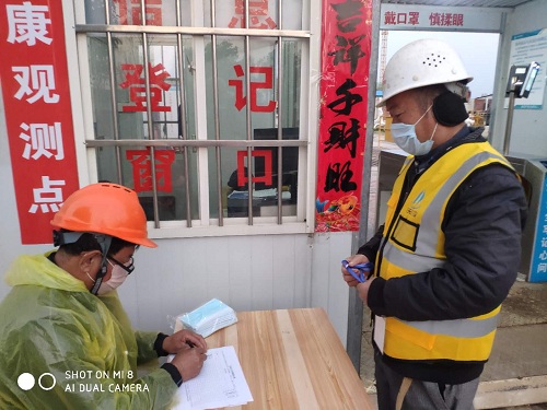 (1)按"外防輸入,內(nèi)防擴散”原則,嚴格按照集團公司《新型冠狀病毒肺炎疫情防控聯(lián)動應(yīng)急工作方案》防控要求,要求各施工班組錯峰返崗,且所有返崗人員采用大數(shù)據(jù)查詢工具“疫情期間行程查詢”查詢?nèi)藛T行程,確保無重點疫區(qū)人員進入工地,并填寫節(jié)后返崗人員疫情防控調(diào)查表,建立“一人一檔”健康檔案。