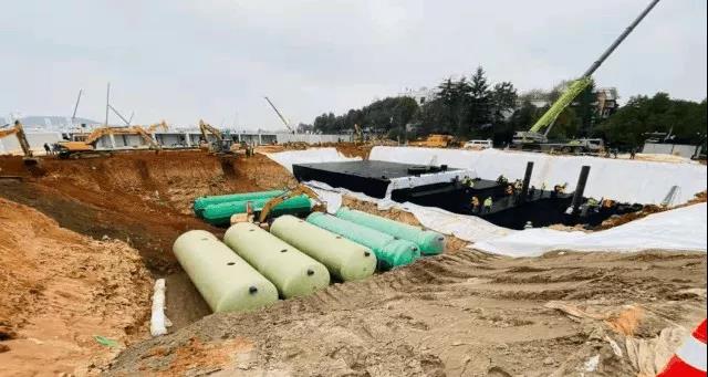 和火神山醫(yī)院一樣,雷神山醫(yī)院臨近黃家湖。為避免對(duì)環(huán)境造成污染,項(xiàng)目采取了同樣嚴(yán)格的防治措施。而雷神山醫(yī)院的整體面積比火神山大了將近一倍,床位增加了一半以上,擴(kuò)容、擴(kuò)量之下如何降伏“第五虎”?團(tuán)隊(duì)鋪設(shè)12萬平方米的高強(qiáng)度防滲膜,24萬平方米的土工布,確保污水不會(huì)滲入地下土壤或周邊水體。制定雨污水處理原則,醫(yī)護(hù)人員生活區(qū)污水直接排入市政管網(wǎng),病患隔離區(qū)污水則全部引入醫(yī)院污水處理站處理。院區(qū)雨水通過雨水調(diào)蓄池進(jìn)行收集后,消毒再排入市政管網(wǎng)。病患隔離區(qū)污水經(jīng)兩條污水管道收集后,依次經(jīng)過預(yù)消毒池、化糞池、調(diào)節(jié)池、MBBR生化池、高效沉淀池、折板消毒池,再排入市政管網(wǎng)。經(jīng)技術(shù)團(tuán)隊(duì)估算,醫(yī)患分區(qū)之后,雷神山醫(yī)院的污水處理量減少三分之一,提高了處理效率,降低了能源消耗。