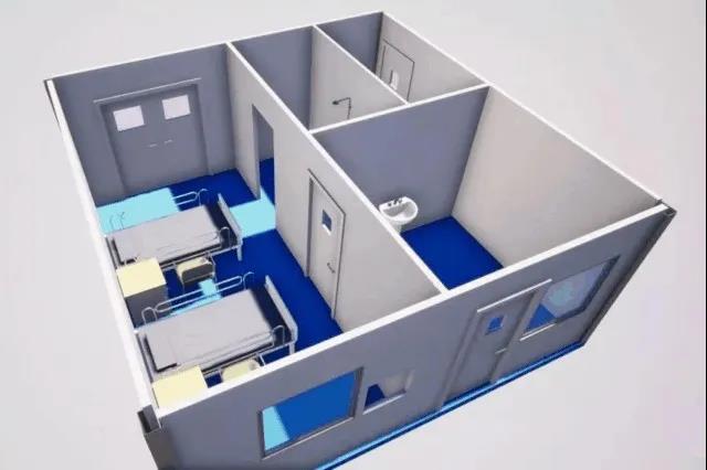 火神山醫(yī)院集中收治患者,控制疫情擴(kuò)散,而在院內(nèi),如何從設(shè)計(jì)上分區(qū)防疫,保護(hù)醫(yī)護(hù)人員防止交叉感染?醫(yī)院以“潔污分流、醫(yī)患分流、人物分流”為原則,采用嚴(yán)格的“三區(qū)兩通道”設(shè)計(jì),醫(yī)護(hù)人員按“清潔區(qū)—半污染區(qū)—污染區(qū)”的工作流程布置工作區(qū)域,每進(jìn)入一級(jí)區(qū)域,醫(yī)護(hù)通道與病患通道完全分離,在隔離病區(qū)病房?jī)?nèi),設(shè)有一個(gè)由兩層玻璃和紫外線系統(tǒng)構(gòu)成的傳遞艙,病人的餐食和藥品都會(huì)從這個(gè)傳遞艙傳遞進(jìn)來,通過傳遞艙內(nèi)的紫外線系統(tǒng)消毒,避免感染。每個(gè)病房安置有兩個(gè)床位,房間內(nèi)有獨(dú)立的衛(wèi)生間,多重保護(hù)下為醫(yī)護(hù)工作者提供安全可靠的工作環(huán)境。
