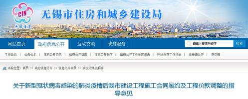 2020年2月8日,無錫市發(fā)布《關(guān)于新型冠狀病毒感染的肺炎疫情后 我市建設(shè)工程施工合同履約及工程價款調(diào)整的指導(dǎo)意見》: